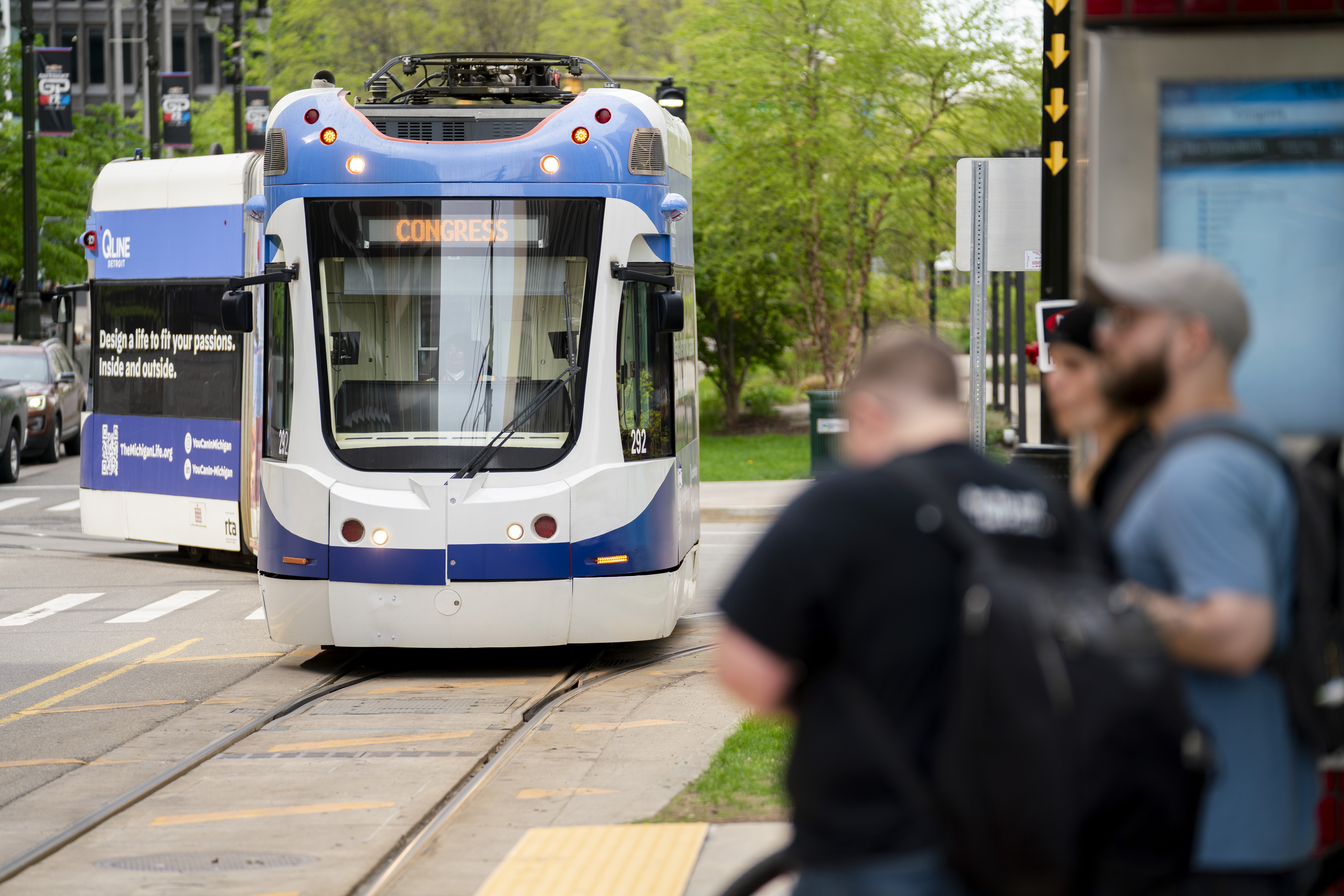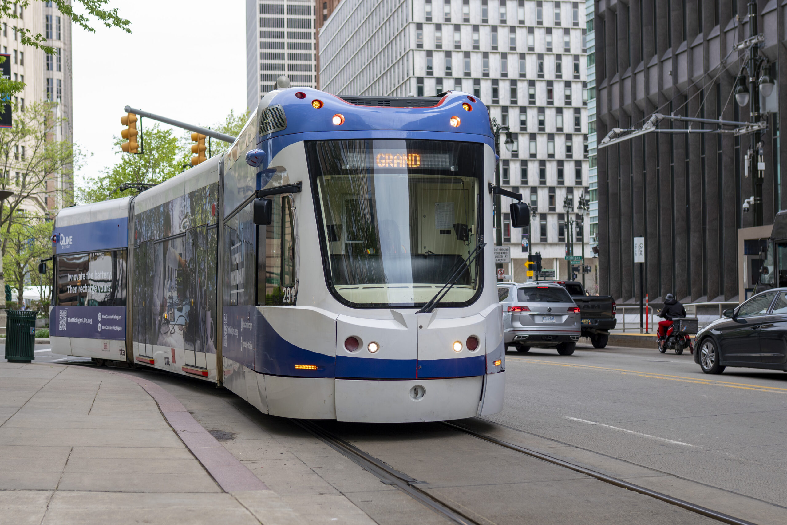 Featured image: The Detroit QLine streetcar prepares to pick up passengers at the Grand Circus stop on Wed. May 7, 2025. (Photo Credit: Donté Smith/Great Lakes Now)